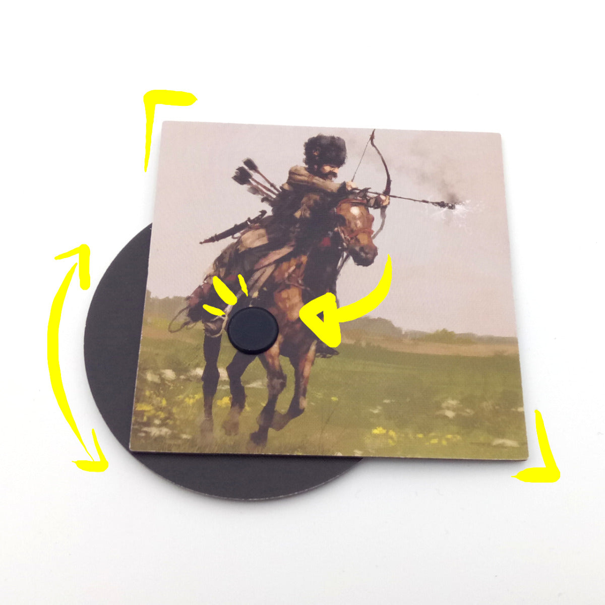 Enthält Kampfräder in den Farben (lila und grün) der beiden neuen Fraktionen der Scythe Erweiterung "Invasoren aus der Ferne".